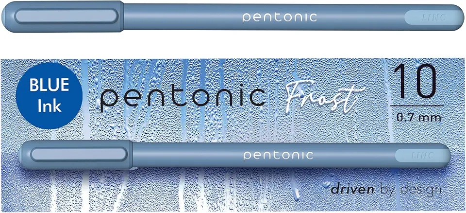 Pentonic — Ballpoint Pens, 10 Count, Frosted Pale Blue Barrel with Blue Ink, 0.7 mm